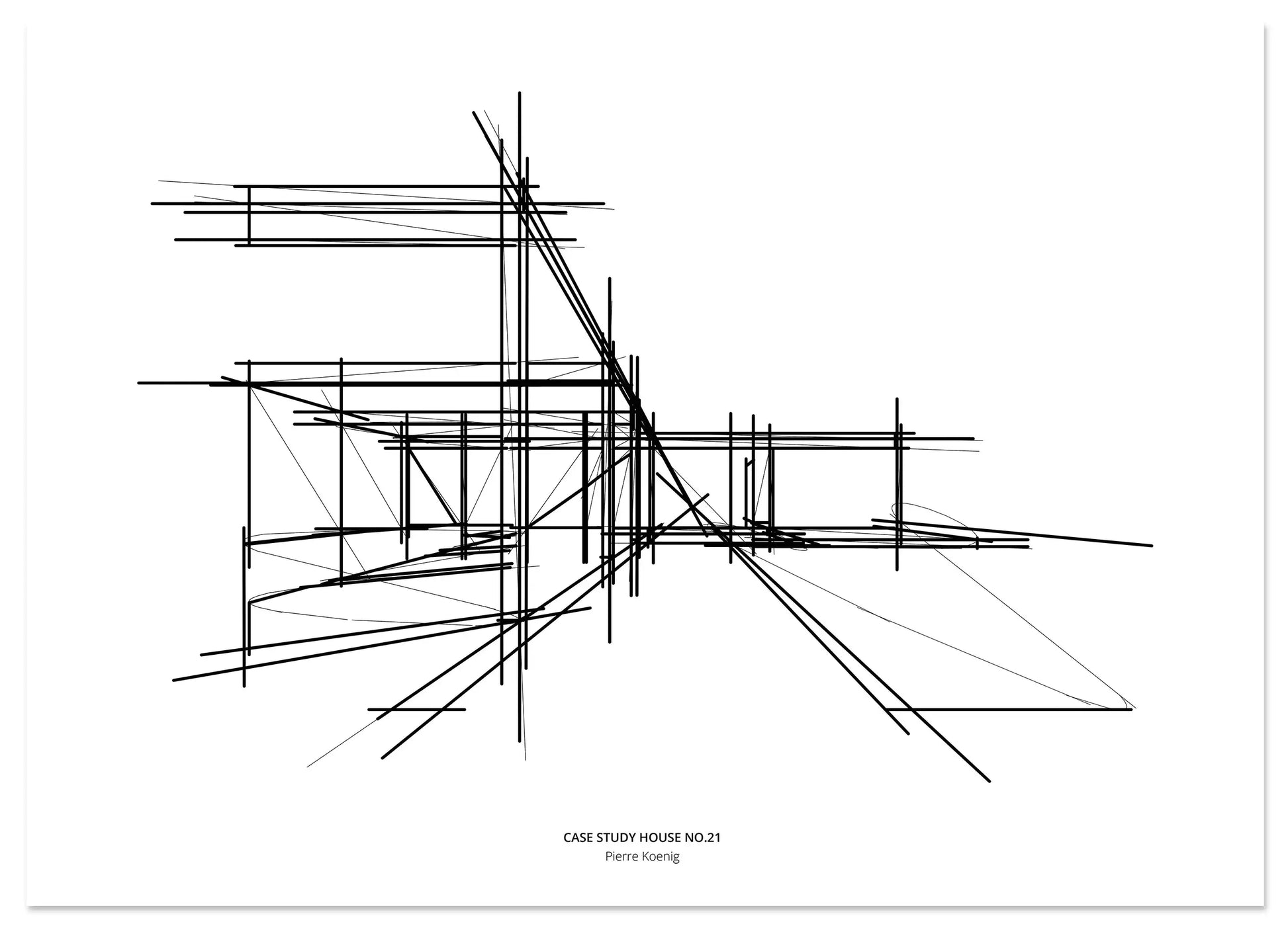 Defined by striking linear precision, the "Case Study House No. 21" Signature Sketch reimagines Pierre Koenig’s modernist icon. Crafted in Freezketch’s expressive style, this piece distills the clean geometry and structural clarity that exemplify mid-century innovation. A timeless tribute to Koenig’s architectural vision, it encapsulates the harmony of simplicity and sophistication, offering a minimalist interpretation of one of the most celebrated designs in the Case Study Program.