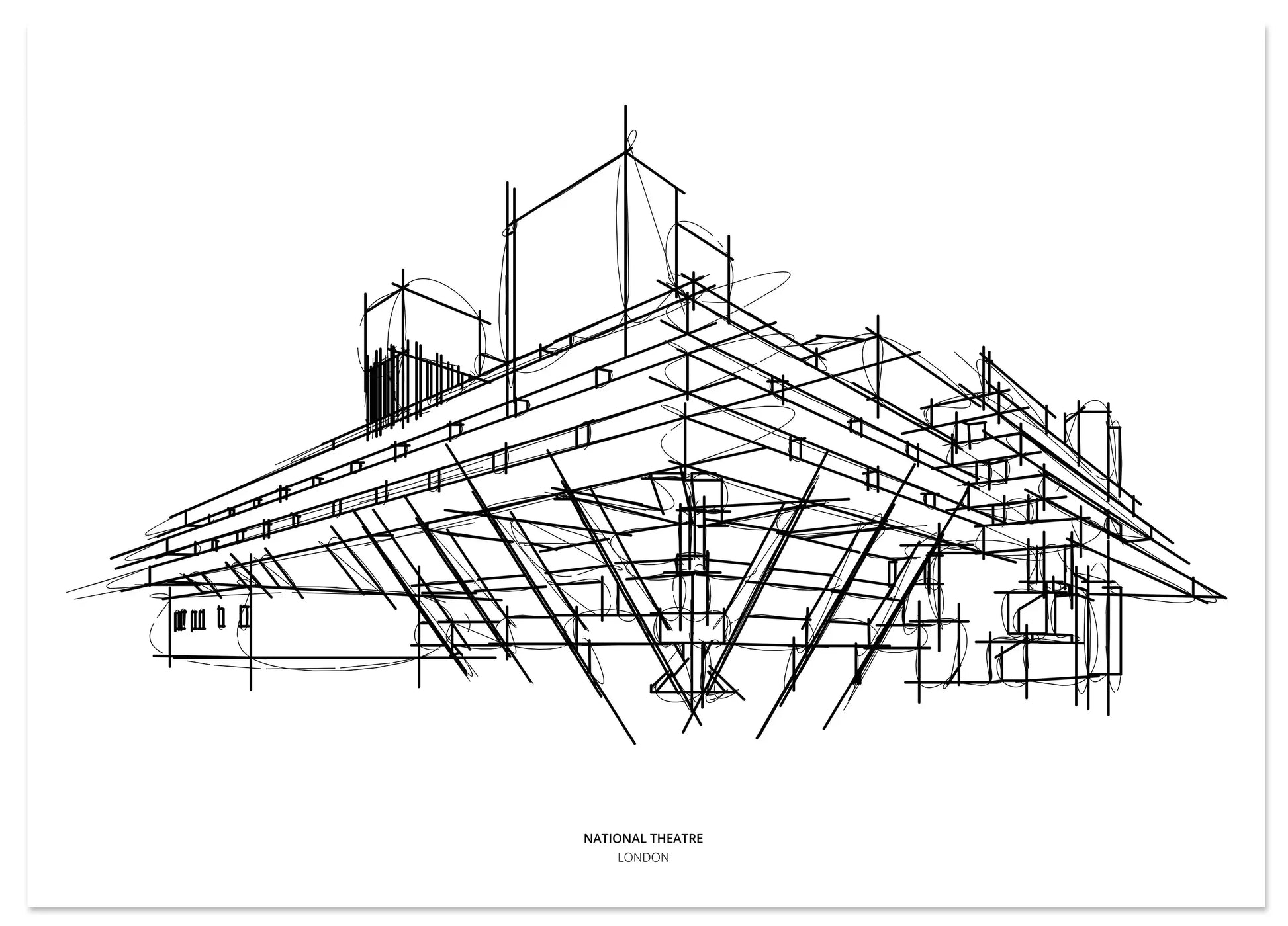 Capture the iconic brutalist beauty of London's National Theatre with this striking architectural sketch print. This minimalist line art piece distills the grand structure into its essential forms, offering a modern and sophisticated take on a beloved London landmark. Perfect for adding a touch of urban elegance and cultural appreciation to any space, this print is a tribute to world-class architecture and design.