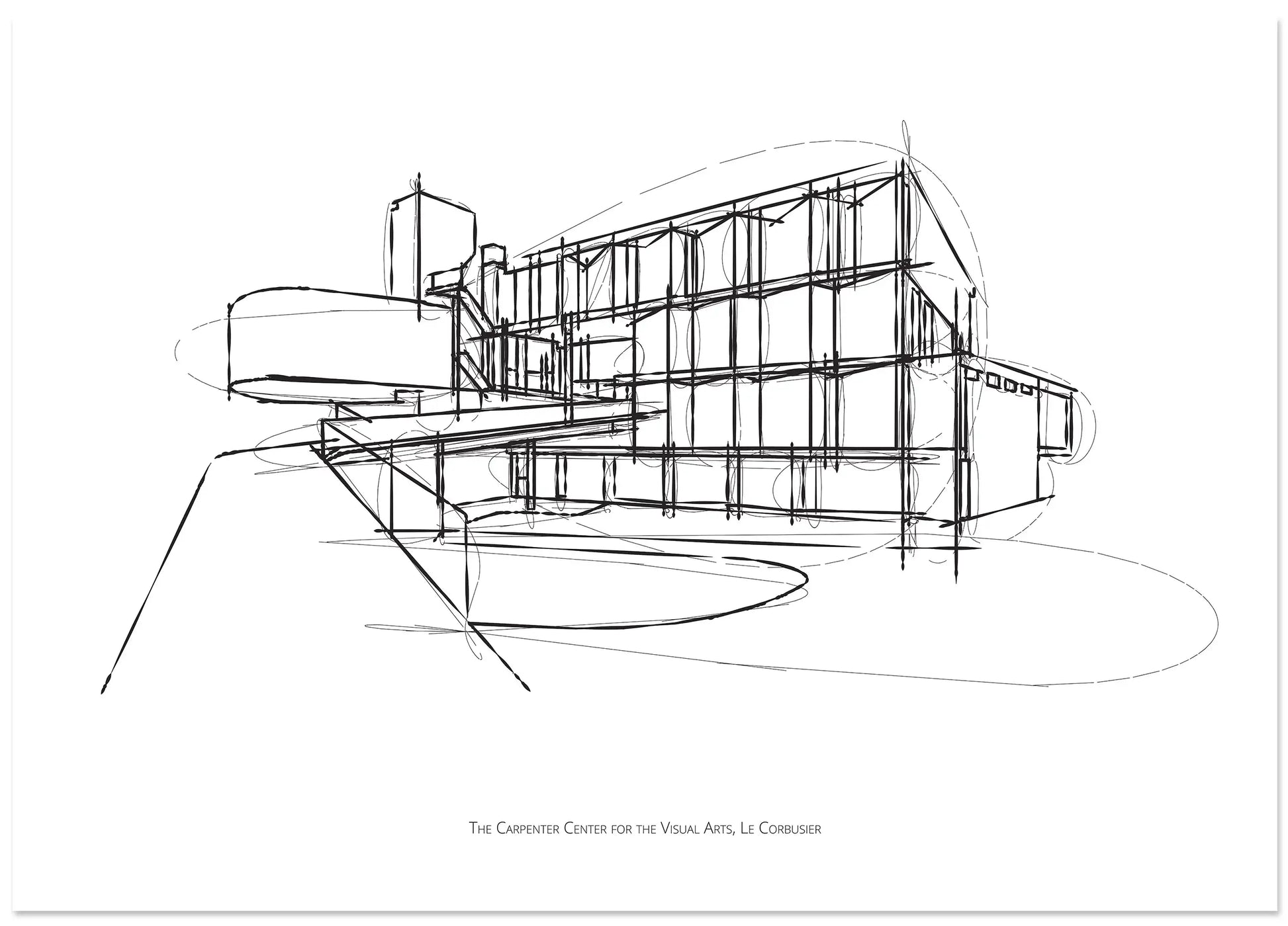 Capture the essence of architectural brilliance with this stunning minimalist sketch of The Carpenter Center for the Visual Arts by Le Corbusier. This artwork brings the iconic curves and striking brutalist details of Harvard University's only building by the legendary architect into a captivating line art print. Perfect for design enthusiasts, architecture students, or anyone who appreciates the raw beauty of modernism, this piece transforms any space with its sophisticated simplicity. Embrace the legacy of Le Corbusier and the spirit of visual arts with a print that speaks volumes through elegant lines.