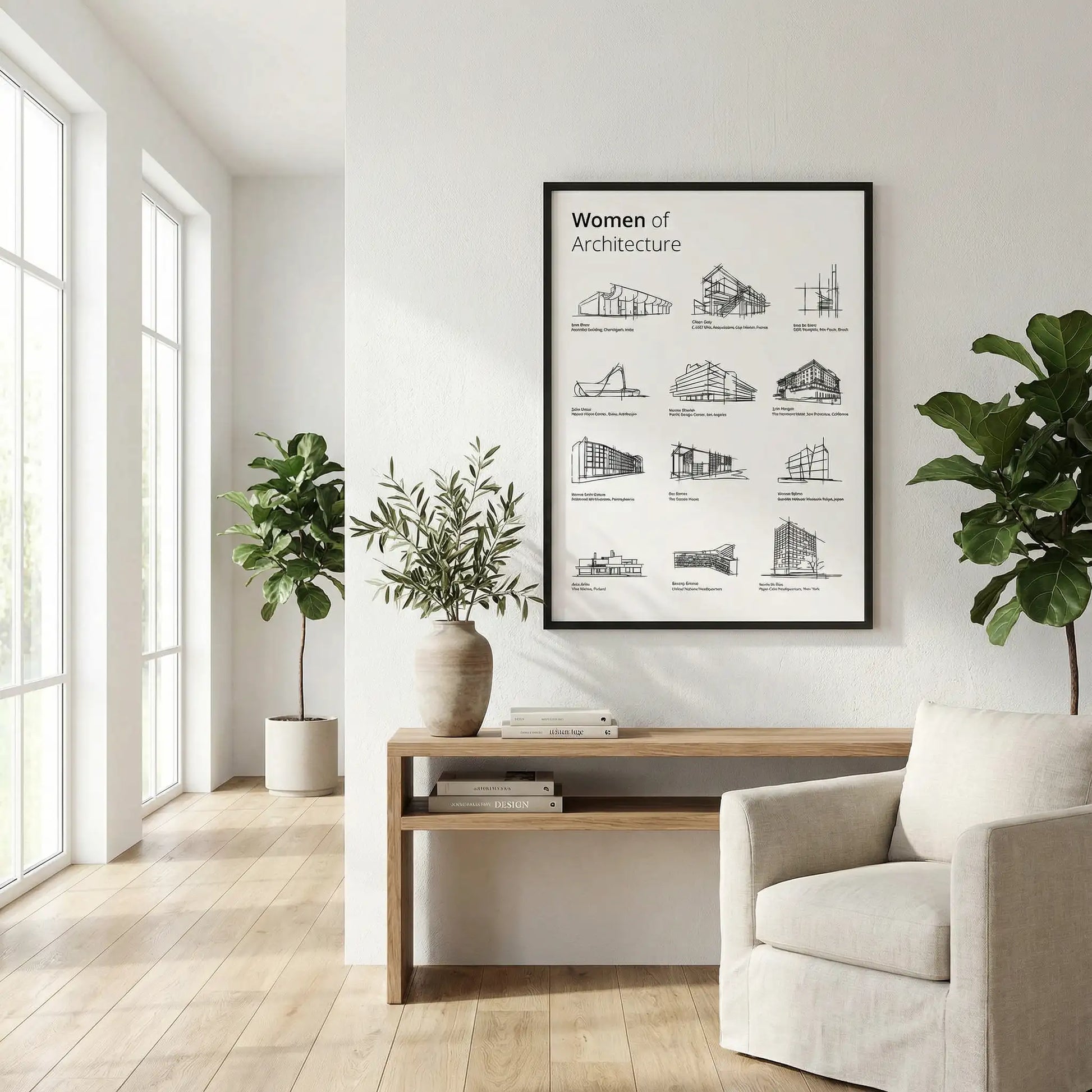 Celebrate the groundbreaking vision of 'Women of Architecture' with this exquisite minimalist line art print. This unique piece features stunning sketches of iconic buildings designed by pioneering female architects, transforming their legacies into elegant and inspiring wall decor. Perfect for those who appreciate architectural history, modern design, and the powerful contributions of women.